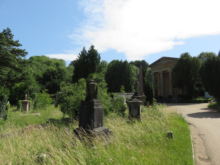 Begin with a walk around the upper part of the cemetery. Follow the main driveway round to the right from just inside the gates.