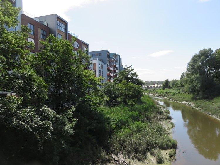 The Paintworks is a new neighbourhood that has developed in recent years on the banks of the River Avon, on the site of a former trading estate. This first section is entirely new-build. As you walk along the pleasant riverside road, you will catch glimpses of a number of elevated residential ‘streets’ at the top of stairs on the left. Explore them, if you like, to find some unusual public art.