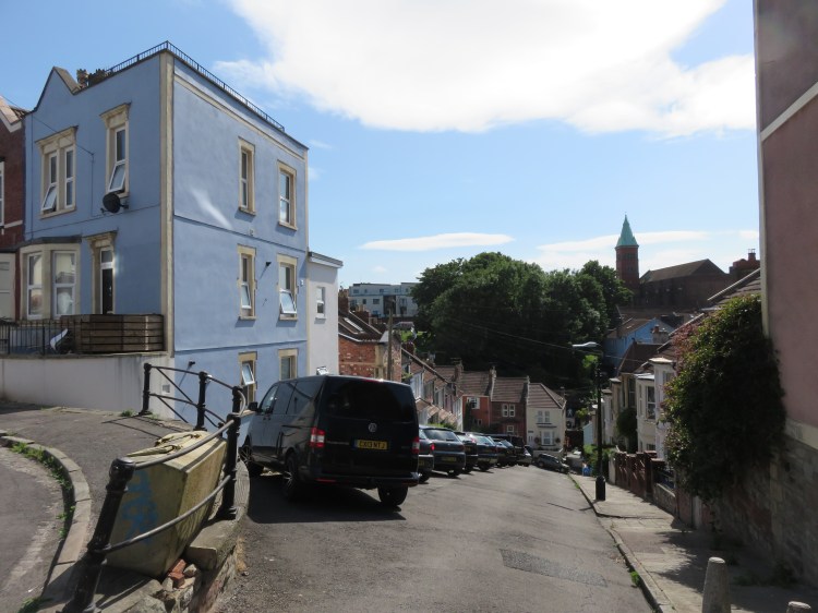 Walkers wishing to avoid the steps can take a detour via Pylle Hill Crescent and Windsor Terrace. En route you will have the opportunity for a closer look at Bristol Jamia Mosque, occupying a converted church at the bottom of Green Street. Rejoin the main route via St. Luke’s Road (18).