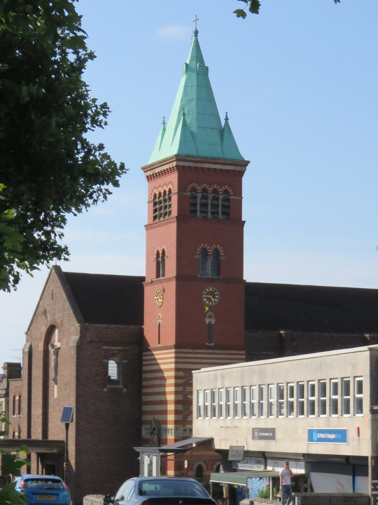 Leafy Wells Road forms the boundary between Totterdown and Knowle. On the right, you will pass the red brick Church of the Holy Nativity with its green copper-roofed clock tower that you saw earlier, a key south Bristol landmark that is visible from many locations within central Bristol, including Temple Meads Station.