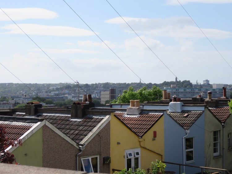 The view over Ravenhill Road is an interesting scene of rolling rooftops, the Perrett Park Allotments and the distant skyline of Bristol City Centre.