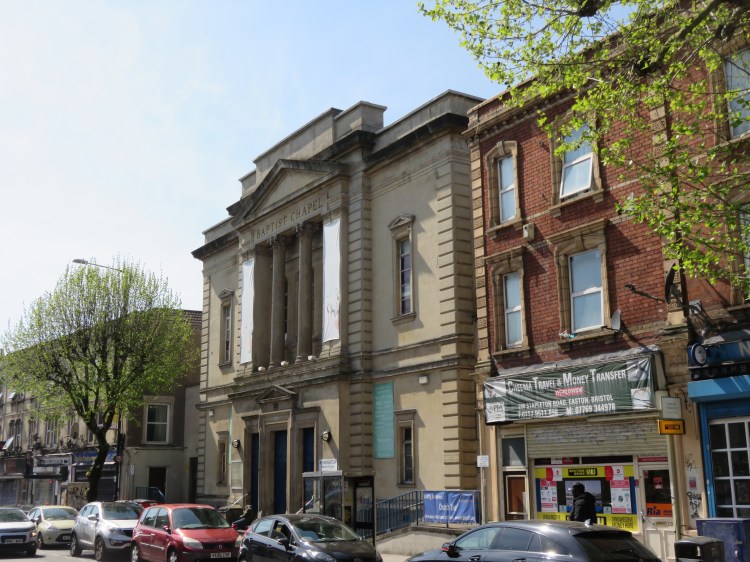 Although slightly scruffy, Stapleton Road certainly has a busy feel to it during shopping hours. After you pass the junction of St. Mark’s Road to the left, the buildings to the right become really quite handsome, culminating in the dignified colonnaded frontage of Kensington Baptist Chapel.