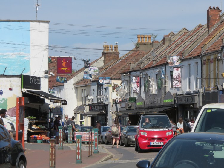 At the top of the hill you will enter one of Stapleton Road’s main shopping areas (2). Colourful shops, most of them independent, occupy the right hand side of the street, while a mixture of terraced and semi-detached houses occupy the left.