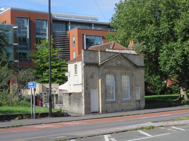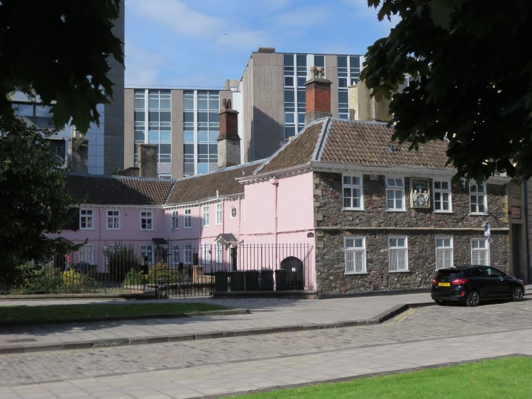 The odd little building on the far side of Redcliffe Way is a combination of two historic structures. The house at the back was the birthplace of the boy poet Thomas Chatterton. The more distinguished façade at the front is all that remains of his school house, moved back to its present location when historic Pile Street was widened to form Redcliffe Way.