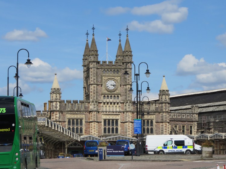 You will quickly arrive at the famous Temple Meads Station. Temple Meads is an exceptionally fine Victorian station complex in an area of the city centre that is otherwise dominated by cars and modern office blocks. The building to the left as you face the main entrance, Brunel’s Passenger Shed, is the oldest, being the original passenger terminus for the Great Western Railway, prior to the construction of the present curved station building in front of you. Separate to the main complex, on the Lower Station Approach to the right, you will find the very fine Bristol & Exeter House, historic headquarters of the Bristol and Exeter Railway.