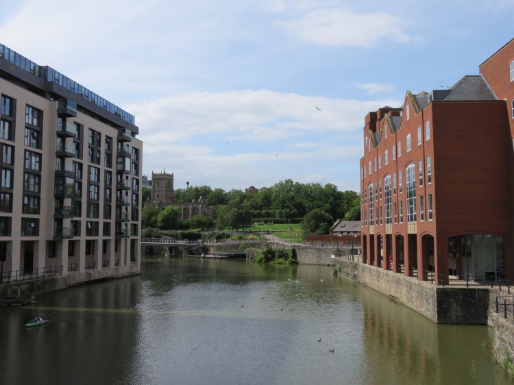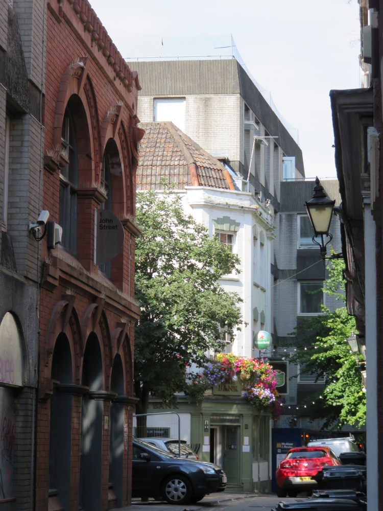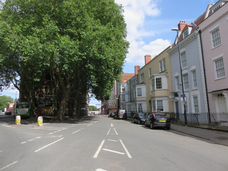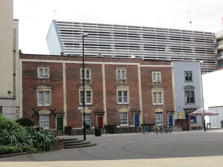 Continuing straight on into Narrow Plain you will find St. Philip and St. Jacob, also known as Pip’n’Jay church, which is one of the few historic buildings surviving in this area, and whose leafy grounds provide a welcome contrast to the concrete and glass surroundings. In the middle distance you can see another row of historic buildings, but the busy Temple Way Underpass blocks the way.