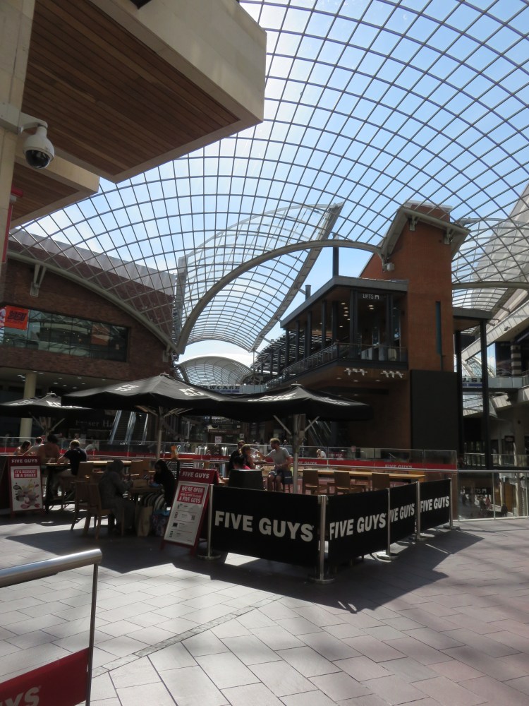 The tunnel under hotel brings you out on the dual carriageway Bond Street South opposite the back of the Cabot Circus development. That’s right – it’s finally time to visit the shops!