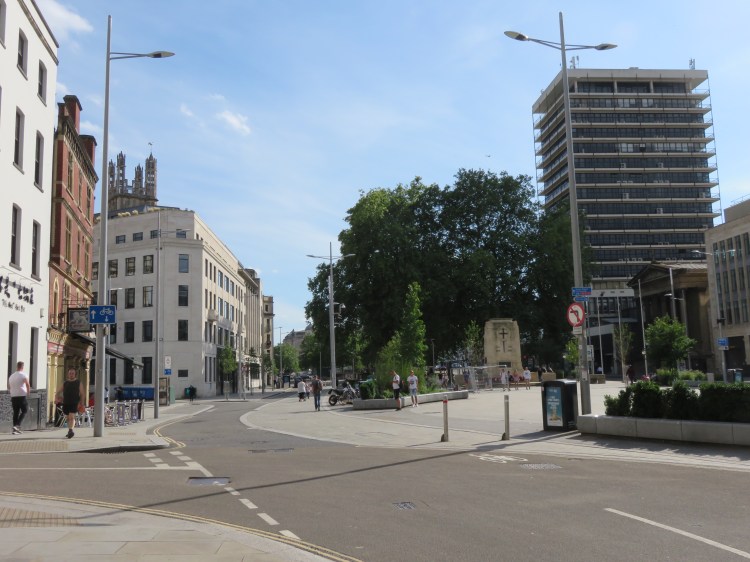 Quay Street will lead you to the newly refurbished area of the Centre Promenade around the Cenotaph, Bristol’s main war memorial. Long dominated by swirling lanes of traffic, the Cenotaph now has a much greener and more dignified setting.