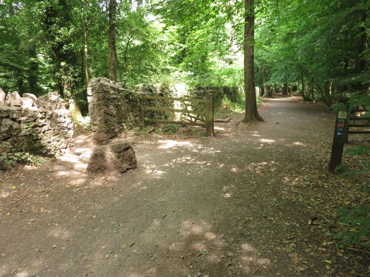 Turn left at a gap in the wall next to a wooden gate (18), which is signed as a link to National Cycle Route 41.