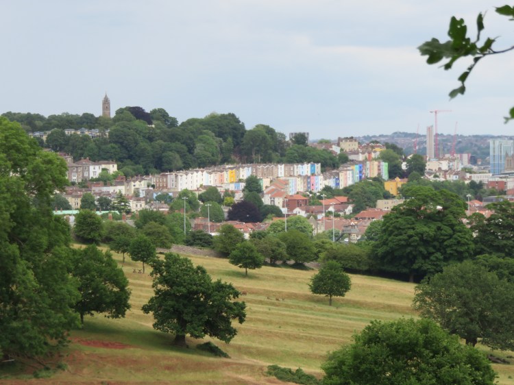 As you descend through the deer park, a panorama of south Bristol will emerge, centred on Ashton Gate Stadium. After a while, you will also be able to see the colourful terraces of Clifton Wood and Cabot Tower on Brandon Hill.