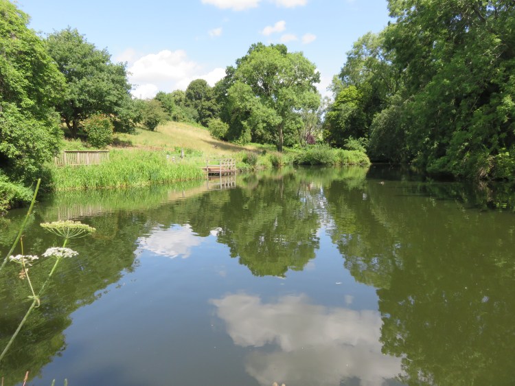 You will descend at first through a meadow area next to a hedge, which is great for wildflowers and insect life. At the bottom of the hill, off to the left, you will find a small lake, which you may wish to look at a bit more closely. Look out for ducks and dragonflies.