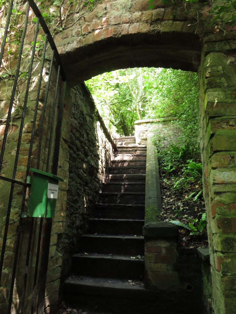 The tunnel takes you to a flight of steep steps leading to a gate. This is the entrance to Bishop’s Knoll woods.
