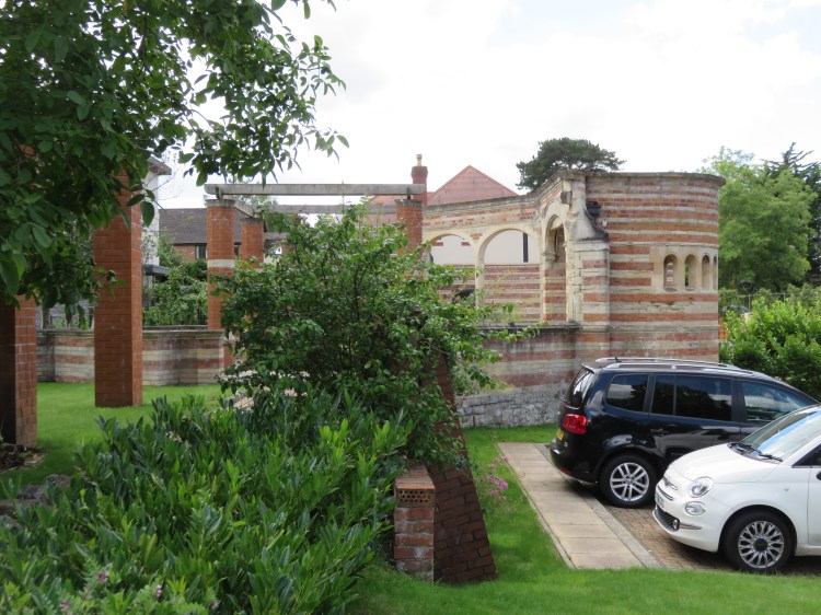 Chancel Close is a modern housing development on a former prefab site that was previously known as Sanctuary Gardens. To the right, as you enter the street, is an unusual historic garden structure.