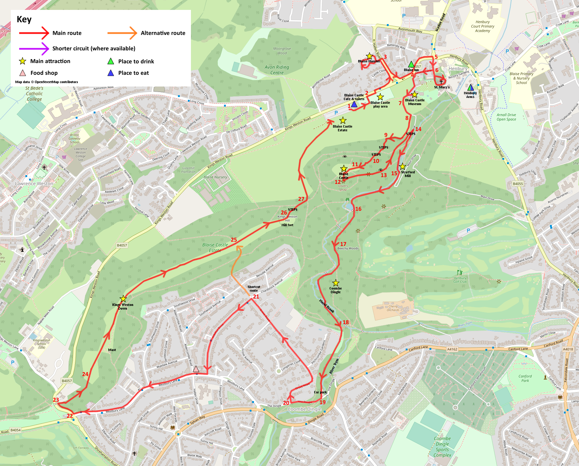 Refreshments: Café at Blaise Castle Estate and pubs in Henbury village.