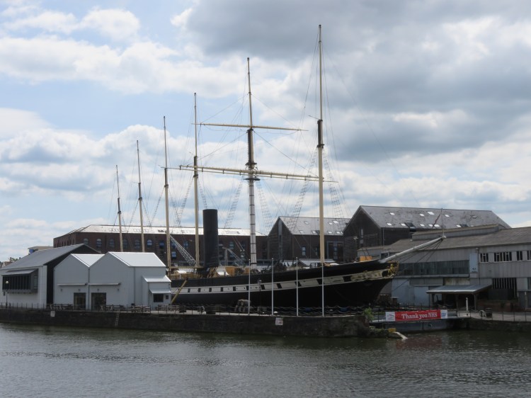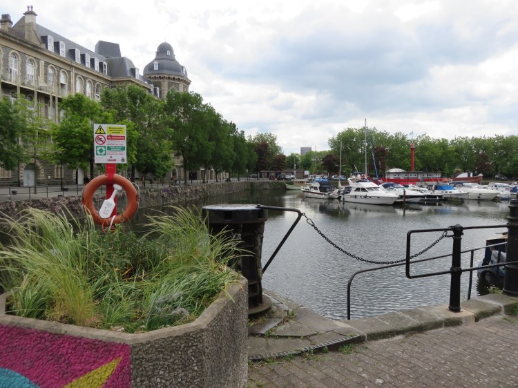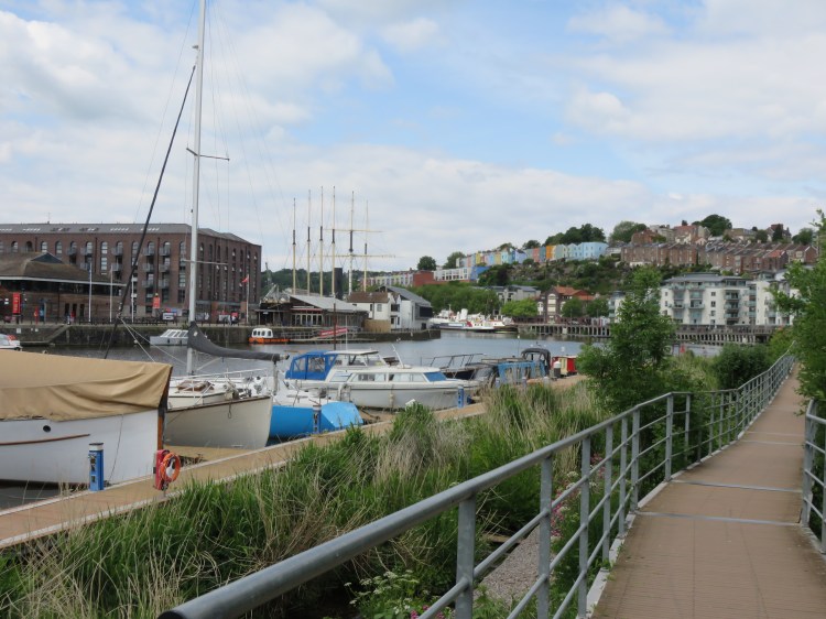 The presence of a working shipyard and the s.s. Great Britain beyond the marina means that there is no quayside walkway for a short stretch on this side of the Floating Harbour.