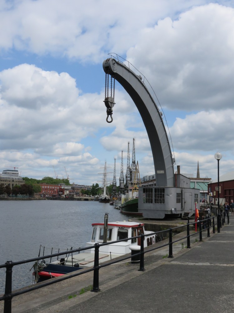 Shortly you will pass the Fairbairn Steam Crane (13). At around 150 years old, the steam crane is Bristol’s oldest powered dockside crane, and is still maintained in working order – at the Harbour Festival and on other special occasions, the crane is still operated.